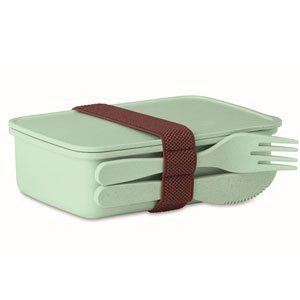 Eine Brotdose macht Lust, unterwegs selbstgeschmierte Stullen zu essen statt plastikverpackter Supermarkt-Sandwiches. Dieses Modell wird außerdem inklusive Besteck geliefert. Brotdose mit Bambusfasern, gesehen bei Werbeartikelfuxx, ab 3,84 Euro.