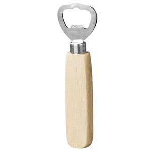 Statt Flaschenöffner mit Plastikgriff: Viele Anbieter produzieren Flaschenöffner komplett aus Edelstahl oder mit Holzgriff. Zum individuellen Werbegeschenk wird der Öffner, wenn Sie den Griff mit Firmenlogo drucken lassen. Holz-Flaschenöffner, gesehen bei Memo, ab 1,39 Euro pro Stück.