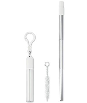 Ab 2021 sind Plastiktrinkhalme EU-weit verboten. Erleichtern Sie Ihren Kunden den Abschied, indem Sie Ihnen umweltfreundliche Trinkhalme schenken. Trinkhalm aus Edelstahl, im Set mit Reinigungsbürste und Transporthülse. Gesehen bei Sandspromotion, ab 2,10 Euro pro Stück.