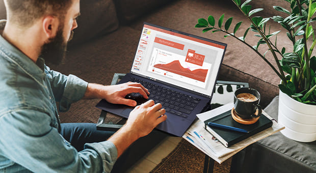 Wieso sich das ASUS ExpertBook B9 außerdem besonders für das Remote-Arbeiten anbietet? Mit nur einer Ladung reicht die satte Akkulaufzeit für den ganzen Tag. Lass dich nicht mehr ausbremsen – denn wenn dir doch mal die Power ausgeht, ist das Gerät dank seiner Schnellladetechnologie in nur 49 Minuten wieder auf bis zu 60 Prozent aufgeladen. Sag Tschüss zum schwächelnden Akku oder dem panischen Suchen nach einer Steckdose in der Nähe, und sag Hallo zum effizienten und störungsfreien Arbeiten mit dem ASUS ExpertBook B9.