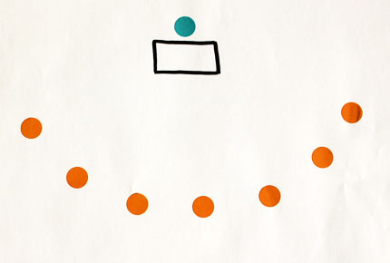 © impulseNoch offener als das U ist der Halbkreis. Hier fehlen die Tische, hinter denen man sich gegebenenfalls verstecken kann. Dadurch wird die Offenheit der Einzelnen gefördert. Am Kopfende sitzt der Moderator, oder eine Präsentation läuft. Wenn Sie weder Moderator noch Präsentation brauchen, schließen Sie den Kreis zu einem klassischen Stuhlkreis.
