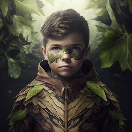 Aber ich finde auch faszinierend, was alles möglich ist. Für meine Stiftung wollte ich zum Beispiel Bilder haben, die Kinder als Superhelden zeigen – mit einem Bezug zur Natur. Hier das Ergebnis: