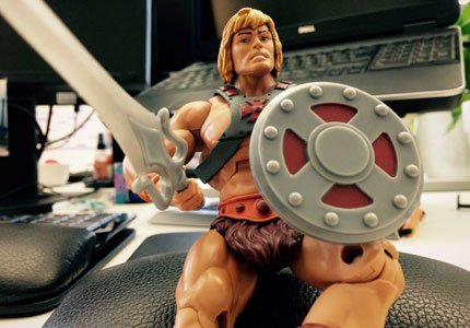 Wer in der Agentur Spirit Link eine He-Man-Actionfigur in die Hand gedrückt bekommt, darf sich freuen: Das Kinderspielzeug aus den 80er-Jahren ist ein Wanderpokal, den die Mitarbeiter sich gegenseitig für gute Leistungen verleihen.
