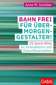 Mit ihrem Ratgeber „Bahn frei für Übermorgengestalter! 25 Quick Wins für Innovatoren und Zukunftsversteher“ (Gabal, 24,90 Euro) will Anne Schüller Unternehmerinnen und Unternehmer dazu anregen, im Alltag kühner zu denken – und beispielsweise für eine offene Feedbackkultur zu sorgen. Um Menschen zu stärken, die Zusammenarbeit zu verbessern und Innovationskraft in Unternehmen zu vergrößern – für eine bessere Zukunft.