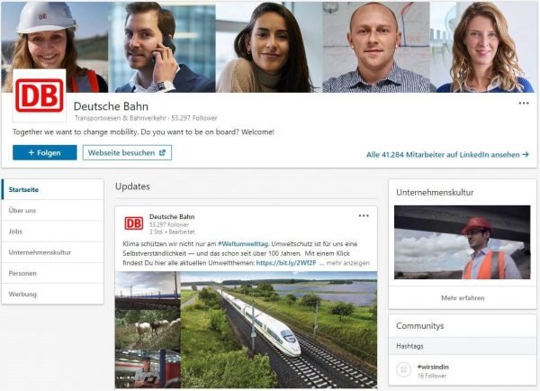 Beispiel: LinkedIn-Unternehmensseite der Deutschen Bahn