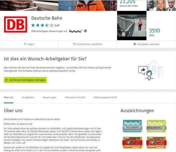 Beispiel: Xing-Arbeitgeberprofil der Deutschen Bahn