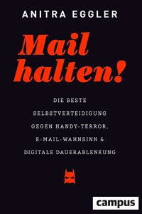Anitra Eggler: "Mail halten! Die beste Selbstverteidigung gegen Handy-Terror, E-Mail-Wahnsinn und digitale Dauerablenkung". 352 Seiten, 19,95 Euro. Anitra Eggler arbeitete als Journalistin und in der Internetbranche als Managerin von Medien- und Werbefirmen. Sie sagt von sich selbst, dass sie nicht anti-digital sei, sondern den naiven Umgang mit digitalen Medien kritisiere. In ihrem Bühnenprogramm versucht sie als Digital-Therapeutin ihr Publikum vom Handy-Terror zu kurieren.