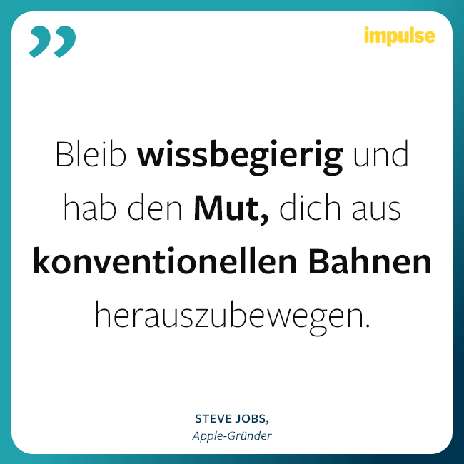 “Bleib wissbegierig und hab den Mut, dich aus konventionellen Bahnen herauszubewegen.”